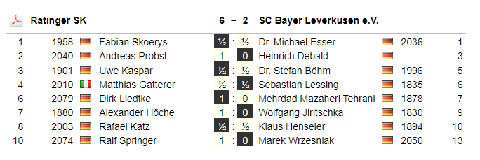 Partien: NRW-K3 (5) Ratinger SK – Bayer Leverkusen