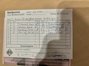 Damit war der Ausgleich wiederhergestellt und wir waren nach Berliner Wertung sogar im Vorteil.